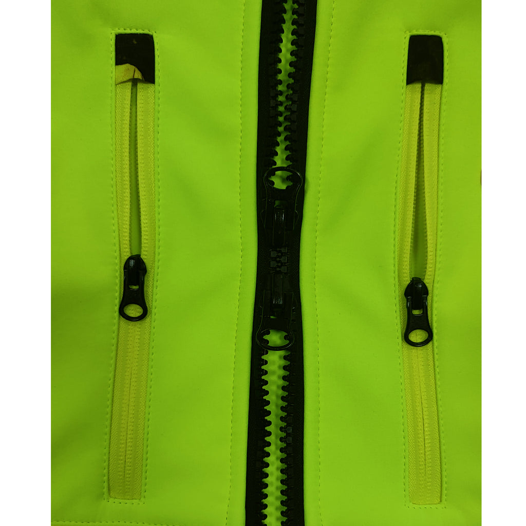 - Contrast 5# nylon reversed zipper on chest, lower and back pockets are novel