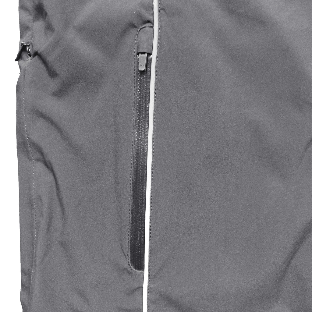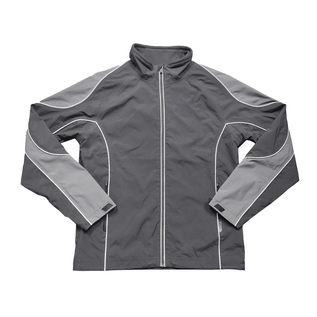 - Full-length front zipper with reflective trim and a soft chin guard for added safety