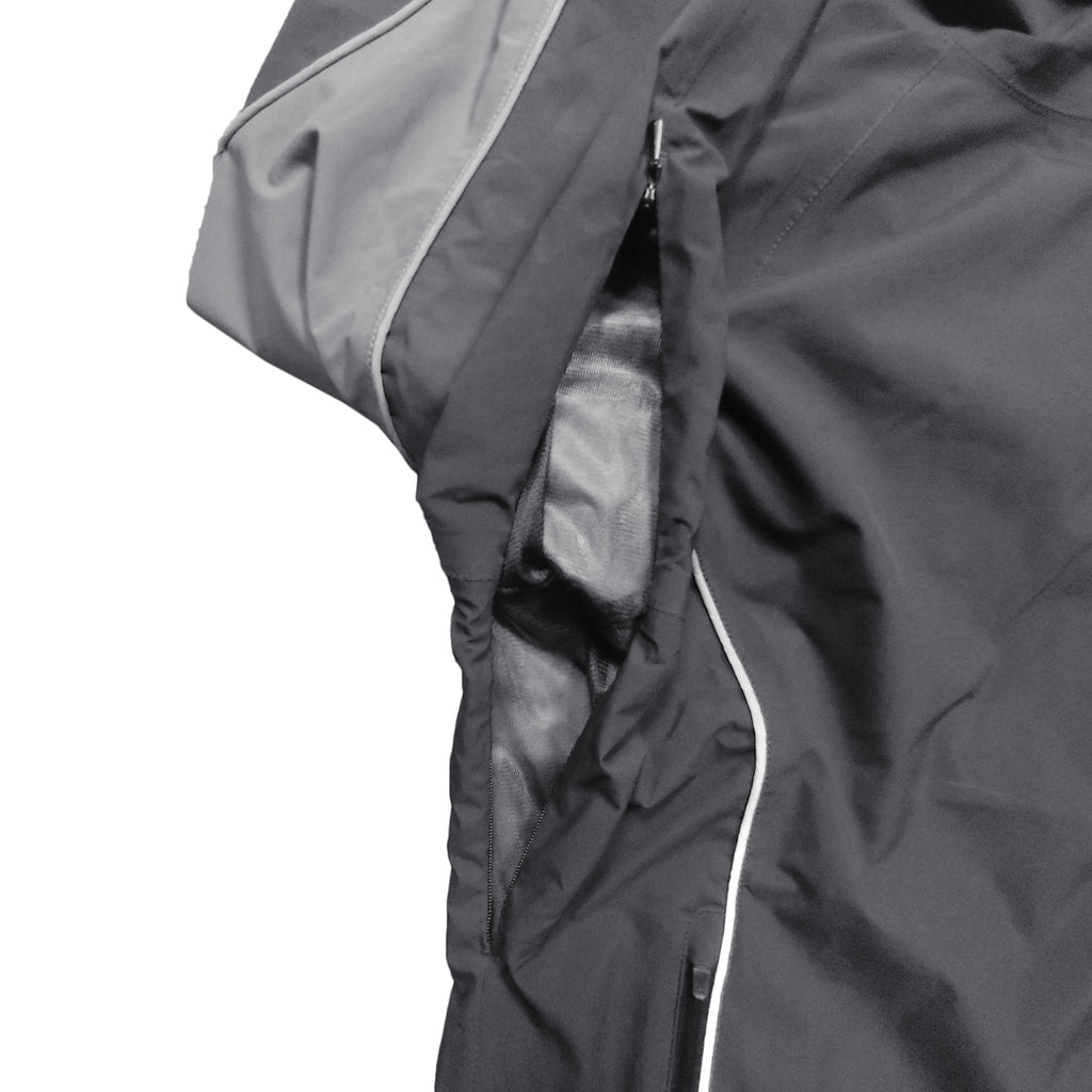 - Waterproof zippered vents under the arms offer breathable comfort without compromising protection