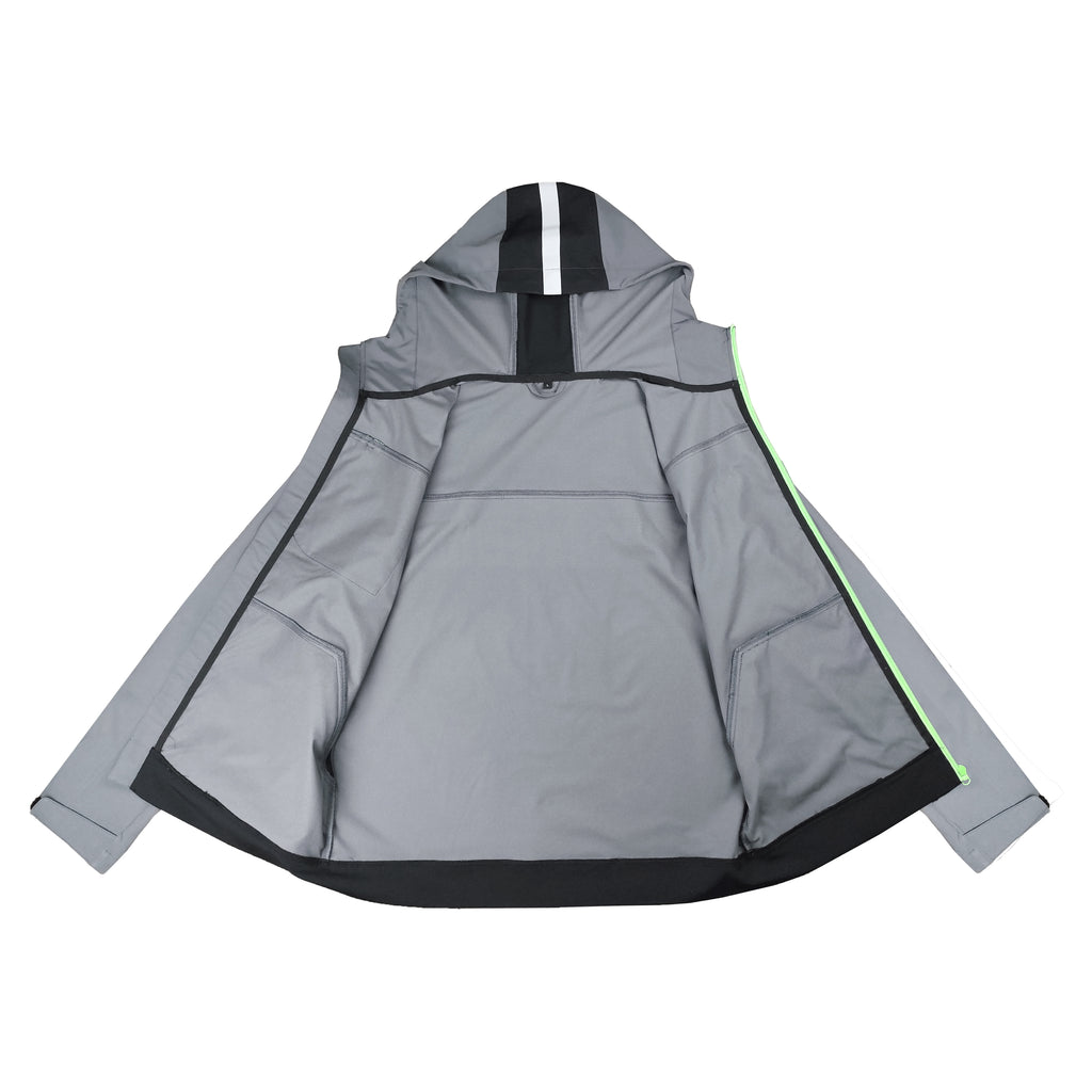 - Reflective silver tapes on the chest, back and hood for enhanced visibility